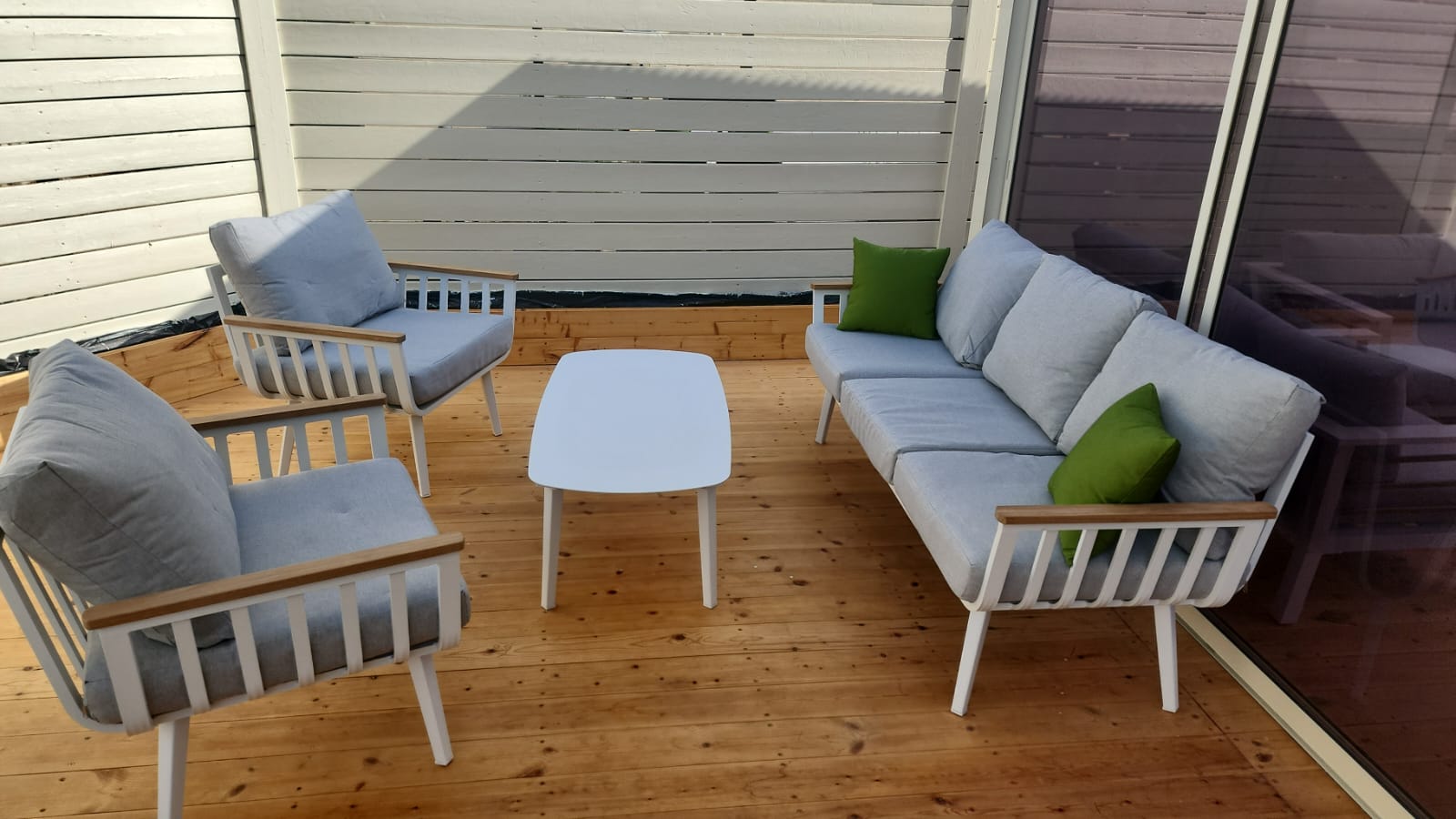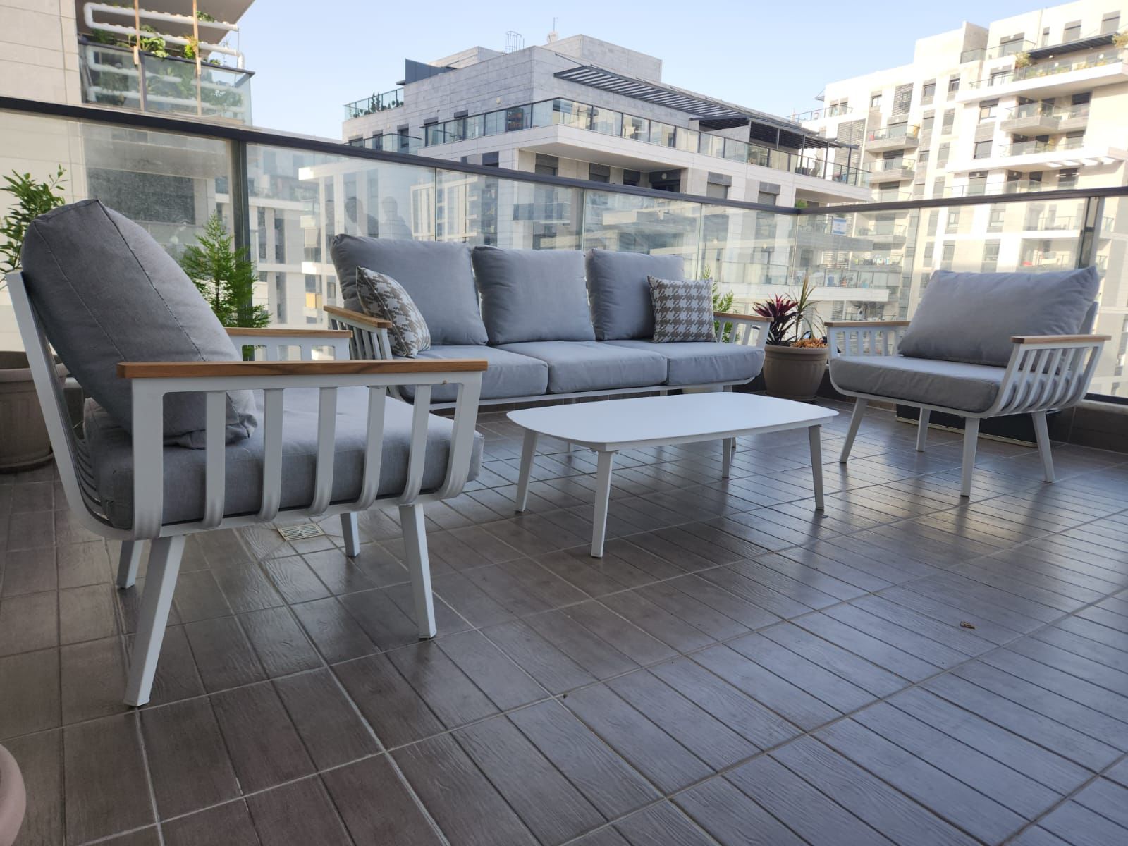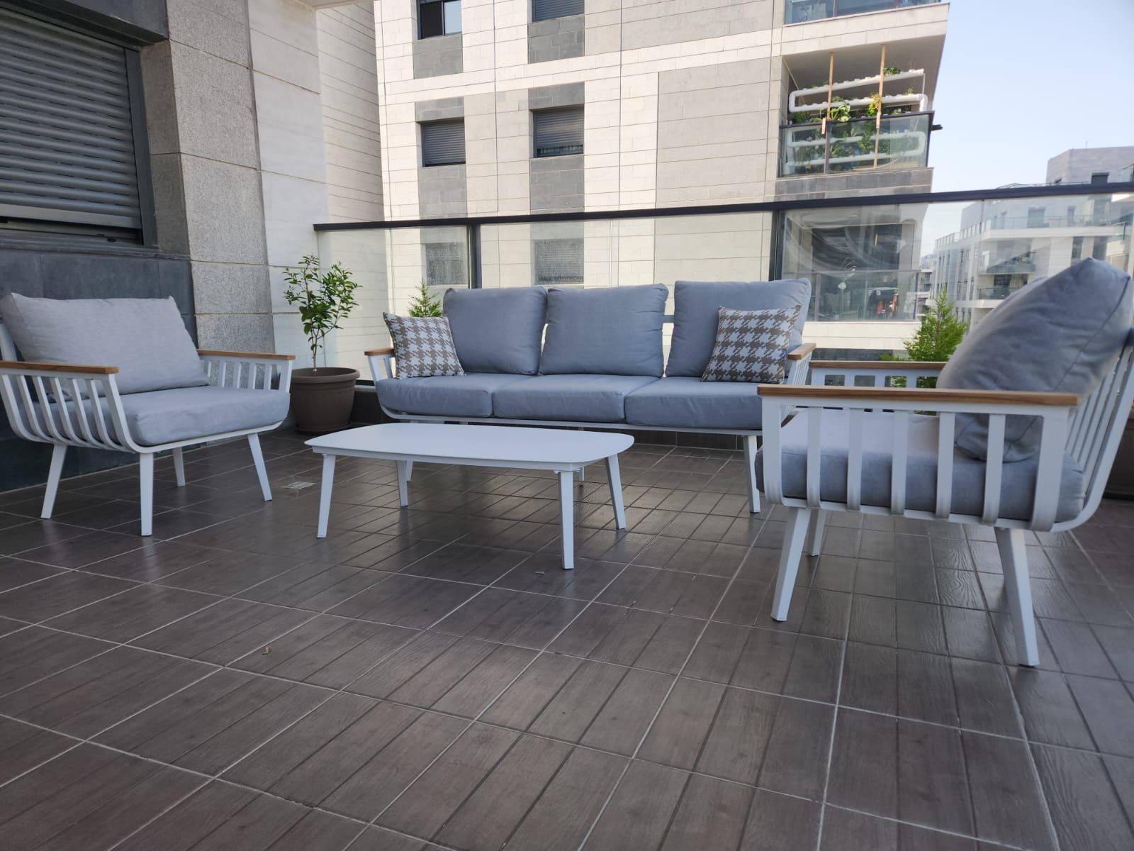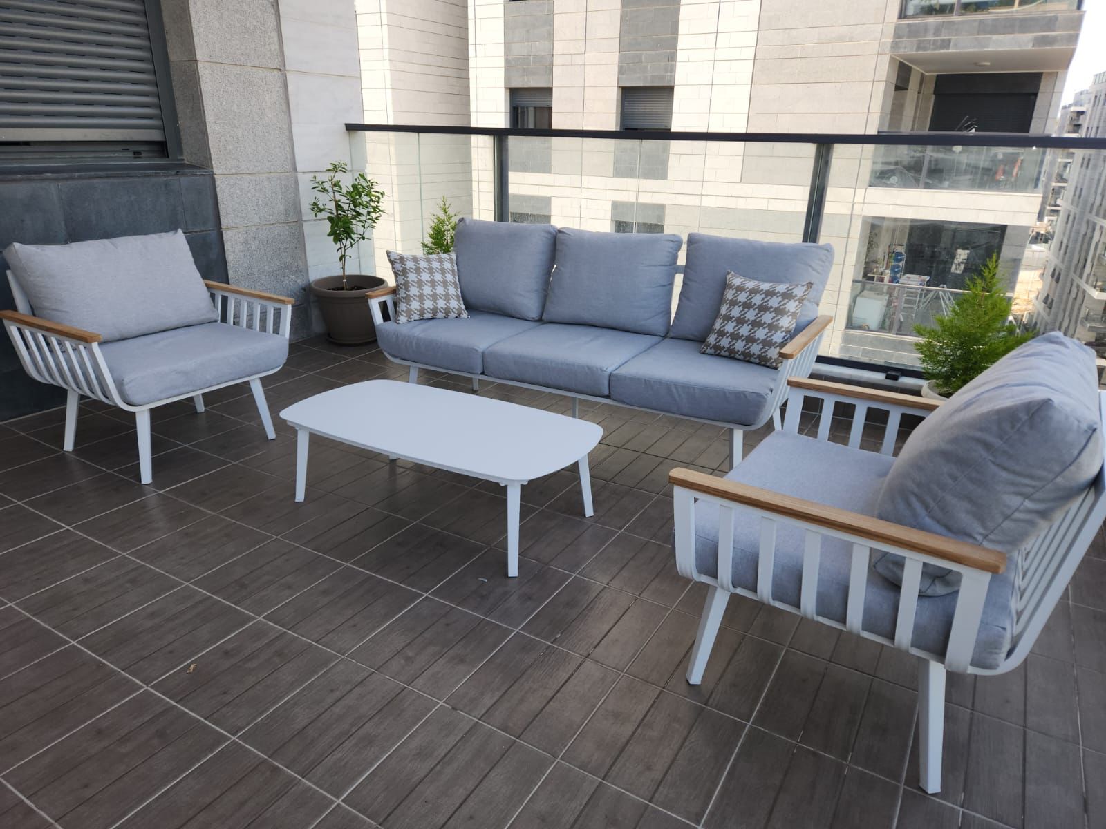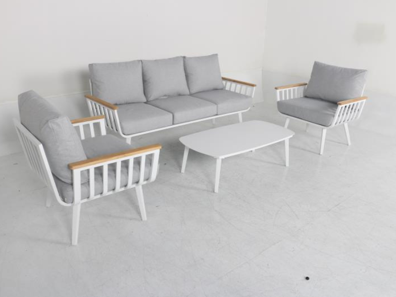 - מדובר במערכת ישיבה אלומיניום 100% בשילוב עץ טיק איכותי.