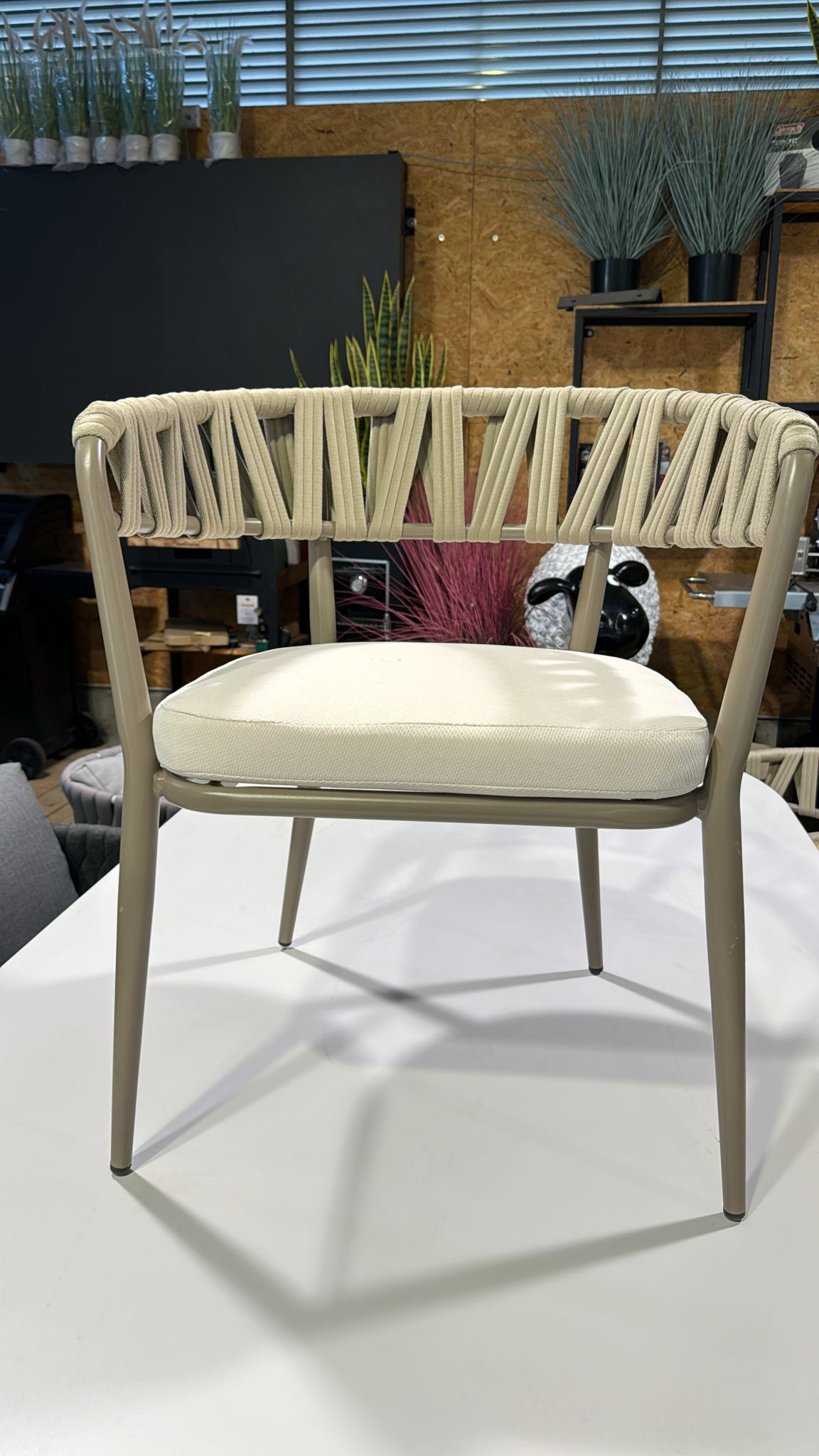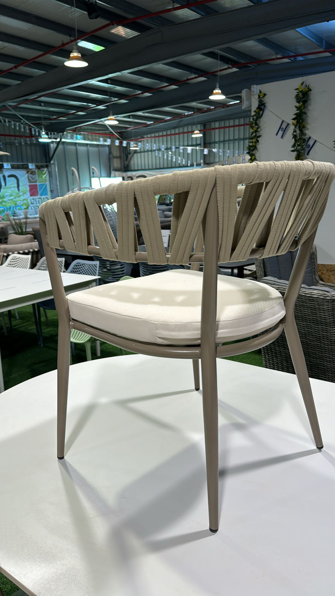 - הכסא עשוי מיציקת אלומיניום משולבת בחיפוי חבל pvc.