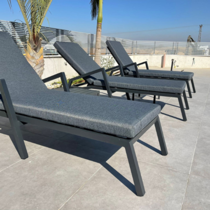 מיטת שיזוף יחיד מתכווננת מאלומיניום – אפור כהה