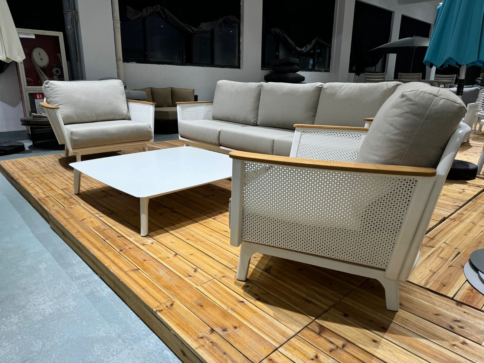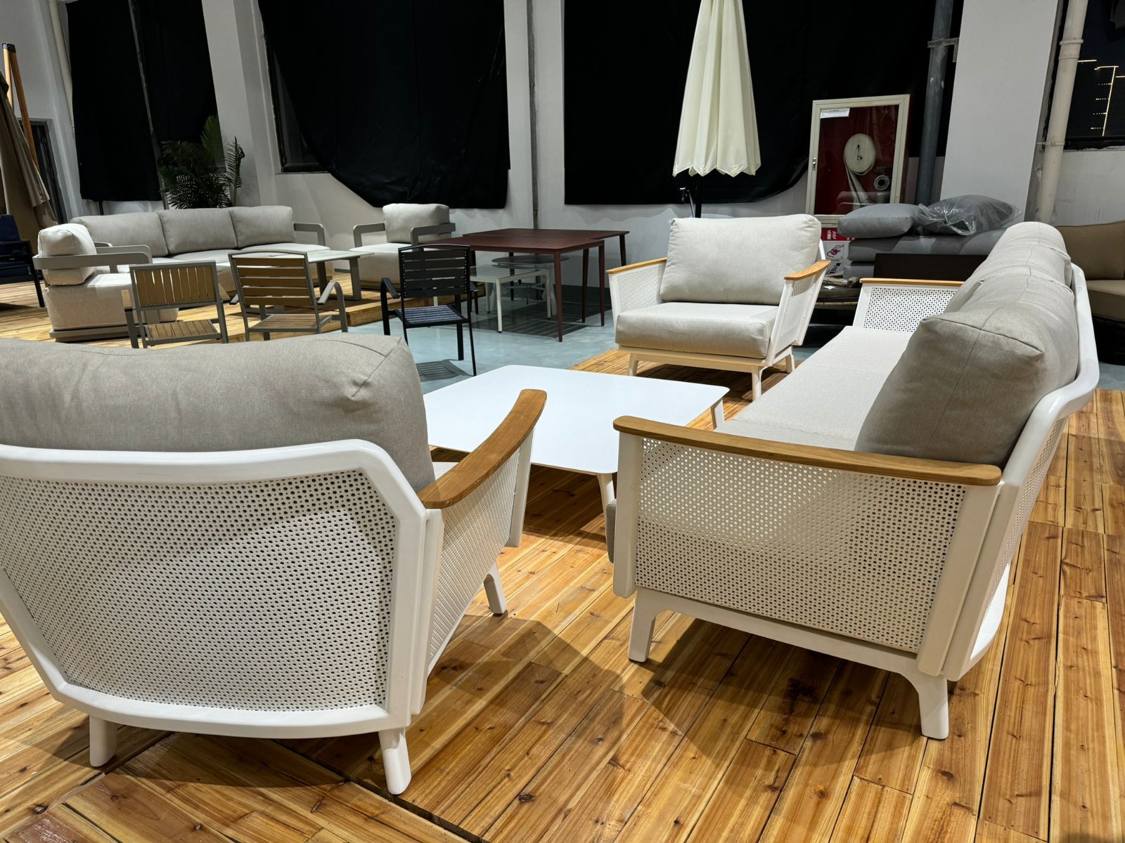 - מערכת ישיבה יוקרתית, עשויה 100% יציקת אלומיניום איכותי בשילוב ידיות העשויות מעץ טיק למראה אקסקלוסיבי.