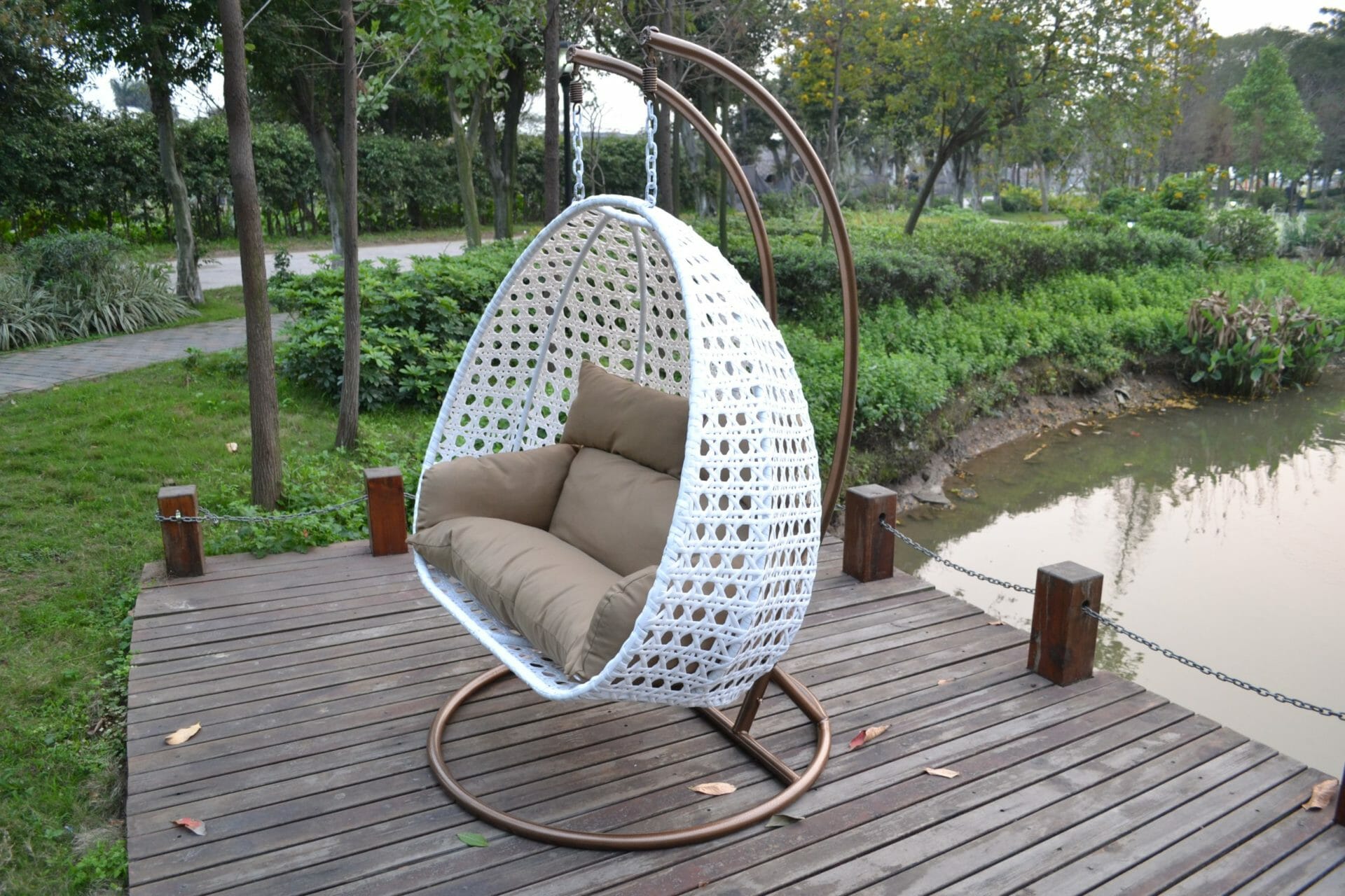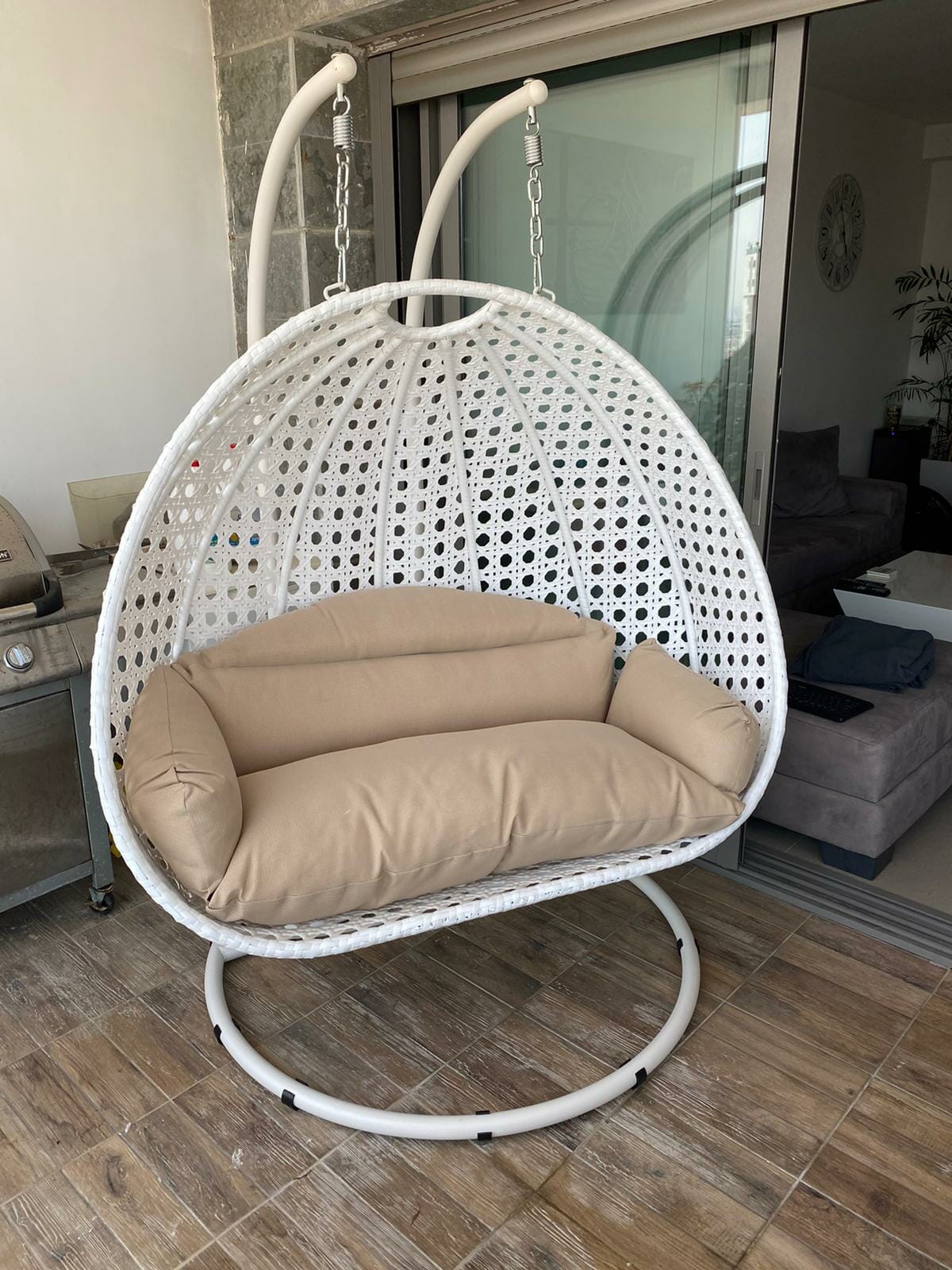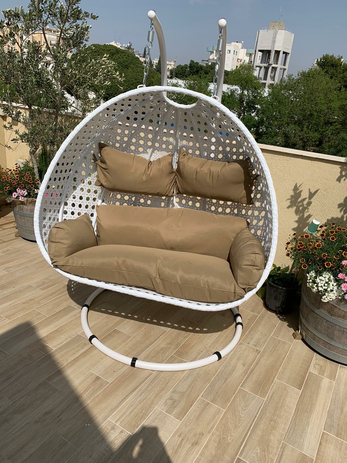 - ערסל זוגי בעיצוב יוקרתי במעטפת ראטן על שלדת אלומיניום הבסיס ו 2 מוטות תלייה עשויים מתכת בצביעה מגולוונת.