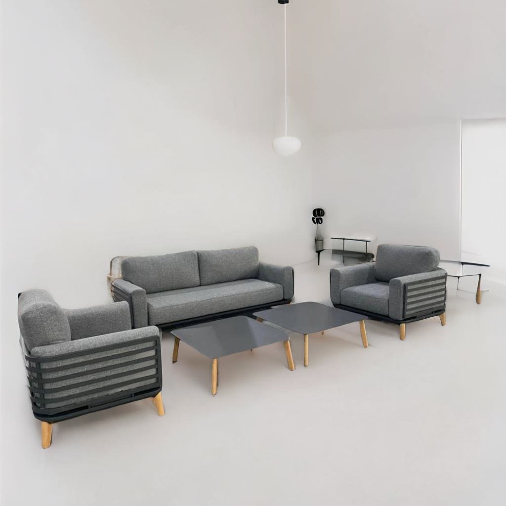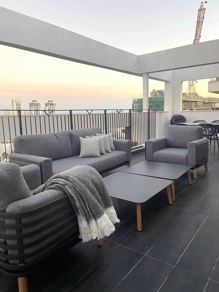 - מערכת ישיבה יוקרתית מיציקת אלומיניום איכותי בגוון אפור כהה.
