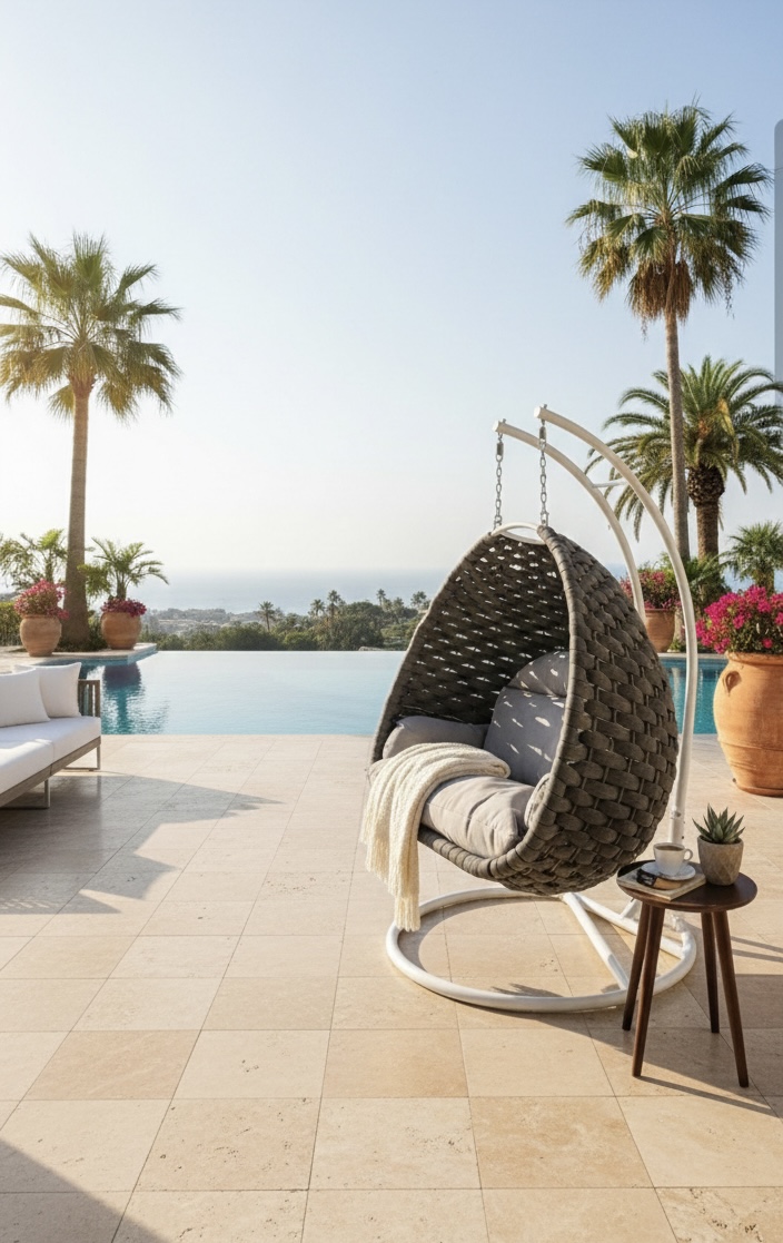 - מתאים לישיבה זוגית מפנקת, עם בסיס ועמוד עשוי מתכת בצבע מגולוון למניעת חלודה.