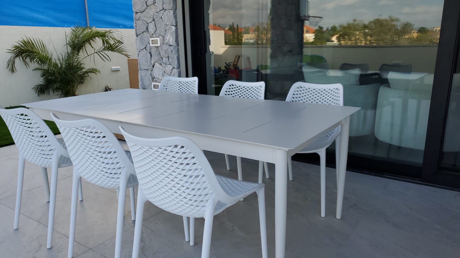 - השולחן עשוי מ100% אלומיניום איכותי, והעיצוב המודרני שלו משתלב בצורה מושלמת בכל חלל בבית.